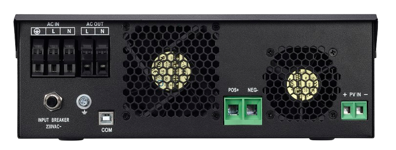 - Inteligentní displej LCD - Multifunkční displej LCD pro sledování v reálném čase a snadnou konfiguraci provozních režimů, včetně vstupního/výstupního napětí, stavu baterie a parametrů nabíjení.